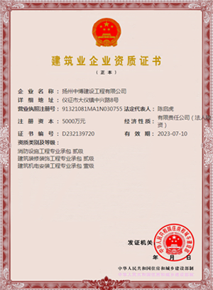 揚州中博建設工程有限公司成立于2016年11月,公司現有注冊資金為5000萬元,擁有配套齊全的機電安裝、消防工程、消防維保和檢測等設備210多臺(套),現有職工180人,消防維保、檢測及安全評估專業人員22人,工程類專業技術人員136人。其中高級職稱3人,中級職稱13人,初級職稱56人,建造師21人。 目前,公司具有建筑機電安裝工程專業承包一級,消防設施工程專業承包二級,建筑裝修裝飾工程專業承包二級、市政公用工程施工總承包三級等施工資質,同時也完成了社會消防服務信息系統的備案。經營范圍涉及建筑工程、裝飾裝潢工程、市政工程、消防安裝工程、水電安裝工程、消防設備維護及保養服務、消防檢測、安全評估以及資質證書中準許的等眾多領域。 公司成立以來,恪守“以誠為本,以信興業”的執業理念,堅持發揚“誠信、務實、創新、發展”的精神,踐行“建一流隊伍,創一流質量,爭一流效益”的嚴格要求,有力地保證了工程項目建設的順利進行。在社會各界的大力支持下,先后完成了數十項建筑機電安裝工程、消防設施安裝工程、市政工程、裝飾裝潢工程、各類大中型廣場和住宅小區消防維護保養、消防工程的檢測以及各類項目安全評估等業績,并得到了廣大客戶的一致認可。